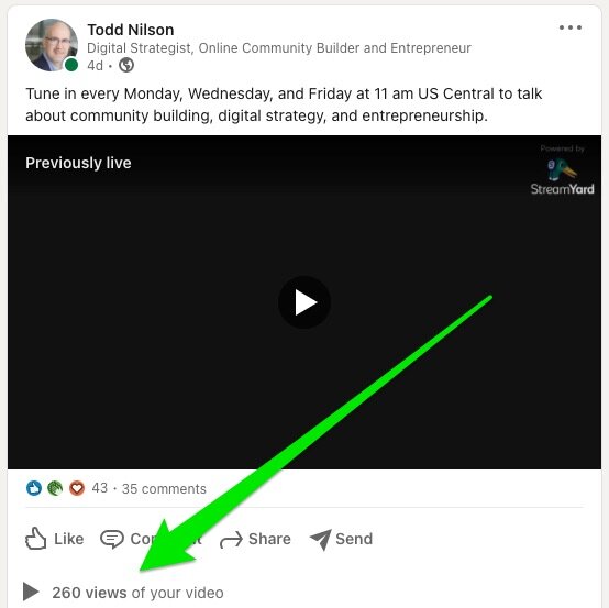 That means I need to reach decision makers in mid-to-large sized organizations with budget and will to build out a community plan. I am already connected to quite a few of these individuals but being on LinkedIn and showing up in the right feeds means that my video stream needs to be popular enough in its own right for LinkedIn’s algorithms to make it show up.