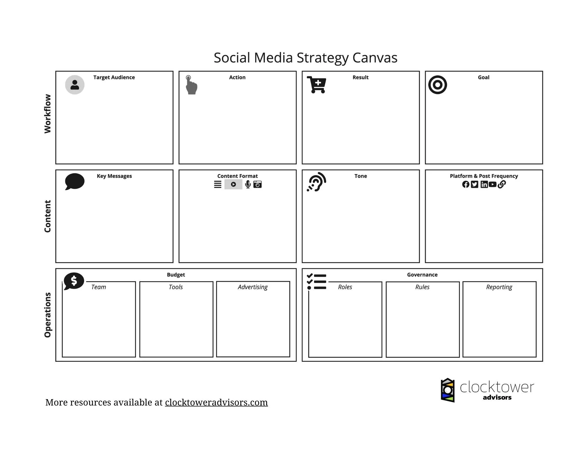 One-page resources are useful tools to focus the attention of teams and executives in your organization. While you will want a fully detailed social media strategy for your organization, there is great utility in providing a thoughtful overview document that can be easily referenced to remind co-workers of “the plan.”